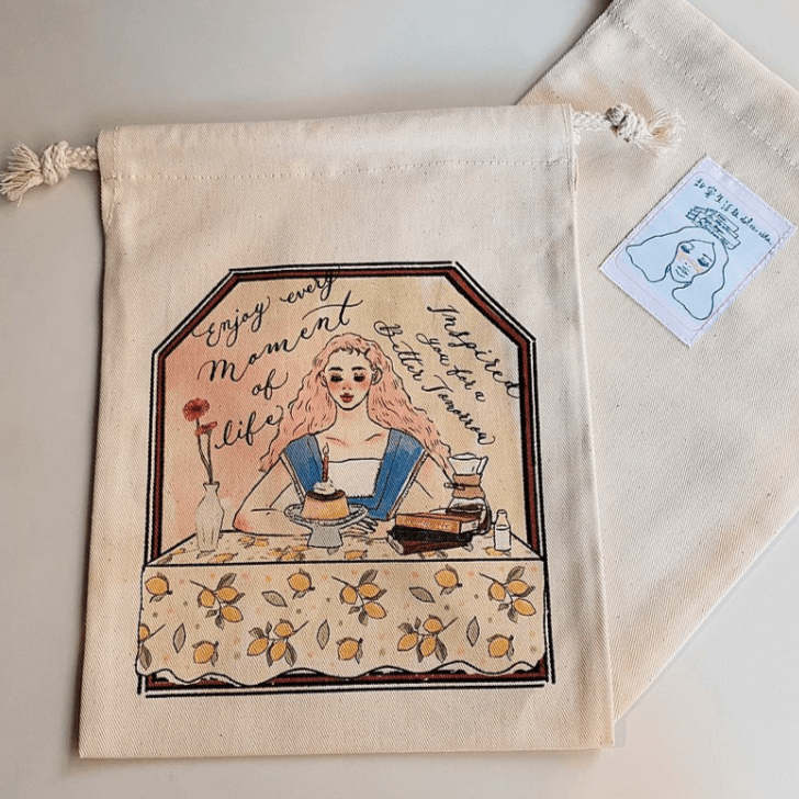 Drawstring canvas bag designed by Taiwanese illustrator, La Dolce Vita. With pastel, dreamy sugary colour tones and rich details, we believe that you will bath in happiness when using this beautiful drawstring bag. It is designed to be light and portable, ideal for storing and organising your favourite stationery, digital devices and other small items.