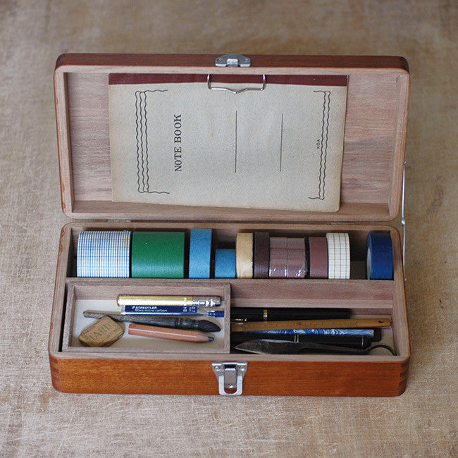 Placing it on your desk will not only add a touch of vintage charm but also enhance the overall aesthetics of your workspace. With its convenient top handle and sturdy hinged lid, you can easily take this wooden box with you to stationery enthusiast gatherings.