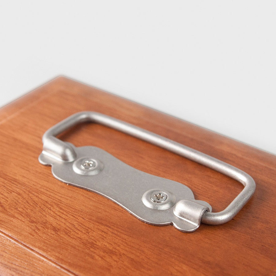 Placing it on your desk will not only add a touch of vintage charm but also enhance the overall aesthetics of your workspace. With its convenient top handle and sturdy hinged lid, you can easily take this wooden box with you to stationery enthusiast gatherings.