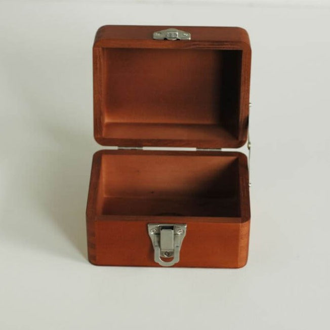 A beautifully crafted miniature wooden toolbox, perfect for organising your rubber stamp collection, washi tapes, and various art supplies. This exquisitely designed toolbox features intricate details, including decorative hinges, a metal handle on the top, and a storage compartment in the lid.